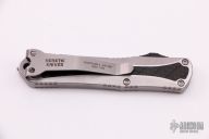 This Manticore S by Heretic Knives features a tanto Damascus blade. The handle has a two-tone stainless steel frame with carbon fiber inlays, carbon fiber thumb slide and a tip down stainless steel clip. Comes with original box, zippered case and COA dated 6/19 and s/n 008. Excellent condition.