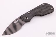 This DC by Strider Knives features a tiger stripe blade with thumbhole. The handle has a flame finished titanium frame with a matching titanium tip up clip. Nice detent, lockup and blade seating. New from Maker.