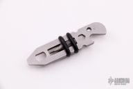 The third tool in the Superbug series, the Atwood ShutterBugs are made from CPM 3v tool steel. They feature a cap lifter, coin slot battery cover driver which doubles as 1/4-20 tripod bushing tool, PC cord repair tool and 1/4" captive bit holder. Other features include a flat prytool/screwdriver tip and 02 wrench. To minimize rust and deepen patina on steel tools, wipe down the oil as needed. Comes with original bag, O-Rings and card. Excellent condition. Blade Steel: 3V