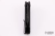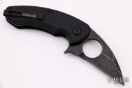 "Jason Brous began his efforts in knifemaking with the benefit of nearly 10 years of experience in CNC machining. His father owns a shop that specializes in the custom machining of high-precision components, mainly for the medical industry. Jason spent a lot of time in his father’s shop while growing up, and by his mid teens was actively helping out with production. His skills and knowledge steadily increased and by the time he was 20 he was a seasoned and very competent machinist. Jason's interest in knives actually began with art - specifically a style called “Bio-mechanical” - as practiced by one of his favorite artists, a Brazilian painter and tattooist named Lango. Biomechanical art (also called Biomech) is a surrealistic style of art that combines elements of machines and robotics with organic animal features. Intrigued by this style of art and its similarity to many fantasy knives, Jason figured that knifemaking would be a natural extension of his metalworking skills and an appropriate medium for his artistic ideas. Although he had no specific training in knifemaking, in 2010 he designed and made his first knife - a fantasy design with a Biomech flavor. Through persistent trial and error, Jason changed his style of knife design to focus on functional simplicity, while still maintaining a strong artistic signature. His early successes came in the form of a series of stout neck knives with dual finger-hole grips. Fans of these “Silent Soldier” neck knives began asking for other expressions of the design. Since then, Jason has created numerous variations including a clip point version, a tanto version and the very popular folder version called the Silent Soldier Flipper."