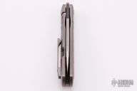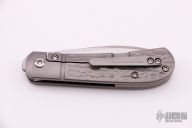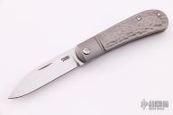 This Trapper Front Flipper by Enrique Pena features a satin finished blade with a front flipper and notched thumbrest. The handle is composed of jigged titanium with a matching backspacer and tip up pocket clip. Includes a Pena X-Series padded box. Excellent Condition.