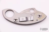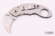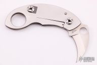 "Our Thomas/Spyderco folding Karambit is all-stainless with an arcing blade shape that carries through into a curved handle creating, in a sense, a large claw. Positioned at the end, for an index or pinky finger, the ring lets you to swing/rotate the blade into different grip positions. When closed an accessible nick/recess in the steel handle channels the thumb to, and then over, the Spyderco Round Hole for immediate blade deployment. To facilitate opening the blade even quicker, the hole is expanded to 13mm in diameter. On the backside, the handle scale is laser cut into a Chris Reeve Style integral Linerlock. The blade is made from VG-10 and double flat-ground with a finger guard behind the cutting edge and a sizable thumb-positioning spine cusp above the hole. These ergonomics merge making the piece feel comfortably curved and easily controlled in the hand. A flat, broad steel clip completes the package and is outfitted with the necessary hardware to position for tip-up/tip-down and left- or right-hand carry. Discontinued Product - No Longer Available." Includes original box. Excellent condition.