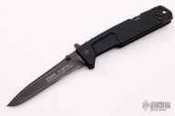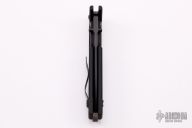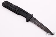 "The structure of the Nemesis is similar to the M.P.C.. It is however more suitable for defense use. The blade is quite thick and flat ground. It is strong and sharp. The upper hilt prevents the hand from slipping onto the blade. The long handle emerges from the hand and allows the knife to be used for applying pressure or non-lethal blows. The blade is blocked through a lever mechanism which acts as a back lock. An extra manual security lock is also found on the lever. This extra lock prevents the blade from closing by accidentally pressing the lever. The lock is also used against accidental opening of the knife. The tang is in tempered steel. It can be used effectively as a glass breaker. It has a hole for fixing a lanyard. The blade is truly in original Italian style." Includes original box. Excellent condition.