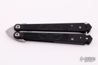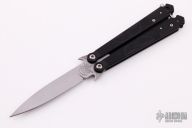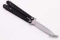 This Wings balisong by Rob Dalton features a bead blast blade and black aluminum handles, has a ball latch at the butt. Locks up tight in both positions. Very hard to find. Excellent condition. Comes with a zippered case.