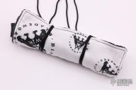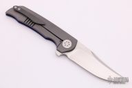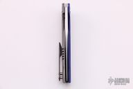 This Mini Wyvern flipper by Walter Randolph features a hand rub satin finished blade with notched thumbrest and flipper. The handle has a blue carbo quartz and bead blasted titanium frame, the blue carbo quartz has a white/black carbo quartz inlay, floating zirconium backspacer and tip up clip. Rides on bearings, nice detent, lockup and blade seating. Comes with cloth pouch and COA dated 10-21-20. New from maker at the 2020 CCKS.