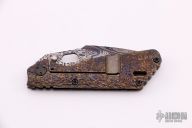 In 1988, he began making specialized knives for use by the military. This turned out to be fortunate turn of events, both for Mick and for the knife using world at large. Mick’s approach was to not get burdened by the weight of past designs. He started with a tabula rasa, a clean slate, informed only by his own experiences and knowledge of what a soldier needed in a knife. The knives he made didn’t look like the hunter-inspired knives seen in most PXs; instead they were almost brutish in their functionality: beefy, solid, and with unbreakable ¼” stock full tangs. These knives were the first indication of his innovative approach: in addition to their utilitarian design, the knives carried a subdued finish and subdued sheaths. No one carrying a Strider knife was going to be spotted because of sunlight glinting off of polished steel or a glossy leather sheath. Soldiers, policemen, and other men going into harm’s way couldn’t buy them fast enough. Mick sampled some good ideas, but made them great. For instance, he was not the first to wrap a knife handle with paracord, but he was the first to do it in a way that was tough enough for sustained infantry use. His knife line grew over the following years to include different varieties of fixed blades, all distinctive and many with specialized uses. But constant in all of them was a disregard for convention, and a desire to try new ideas. An example of this was the Ajax – it featured a very wide blade surface clearly designed to inflict damage. It drew on the weapons carried by Roman legionnaires, yet was modern and usable in the 21stCentury battlefield. Mick also worked on his technical skills, always striving to become better at the physical craft. At the 2002 Blade Show, a group of the best tactical knifemakers in the country decided to compete with each other to produce the most innovative and interesting fixed “battle blade” at the show. Mick’s entry, an incredible integral knife made out of ½” titanium stock with a zippered composite blade, gorgeous handles, and integral guard was the unanimous winner, and effectively retired the competition.