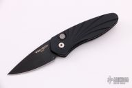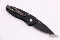 This Sprint by Pro-Tech has a black blade and a black aluminum handle. Pearl push button. Black stainless steel clip. Comes with original box and papers. New from maker!