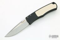 This Magic BR-1 Bolster Release Automatic from Pro-Tech Knives features a drop point stonewashed 154-CM blade with swedge. The handle features a black aluminum frame with checkered bolster and ivory paper micarta inlay on the "A" side of the handle. Black coated stainless steel clip is positioned for tip up carry. Lanyard hole in the pommel. New from maker!