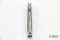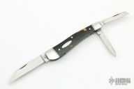This Three-Blade Whittler by Bill Ruple features hand rub satin finished blades with nail nicks. The handle has mirror finished pinched and threaded bolsters, shell covers with a stainless steel escutcheon, stainless steel liners and stainless steel springs. Half stop blade positioning on all blades, flush in all positions. Nice walk and talk. Has a couple of light scratches, otherwise excellent condition.