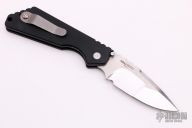 This Pro-Strider SnG Auto by Pro-Tech features a mirror polished compound ground drop point blade. The handle has a black G-10 and black aluminum frame with stonewashed titanium tip up clip. Mother-of-pearl push button.  Comes with original box and papers. New from maker.  #95 of 100.