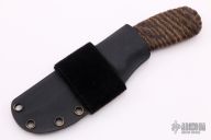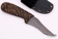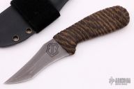 This knife by John Gray features a tumbled finished double-edged blade, .178" blade stock and 1.092" blade depth, full tang construction with epoxied cord wrap. Comes with a kydex sheath. New from maker at the CCKS.