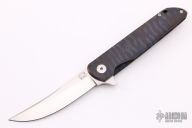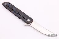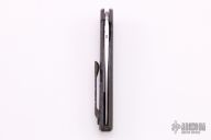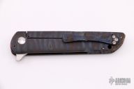 This Splinter 3.5 framelock flipper by DB Fraley features a hand rub satin finished blade with flipper. The handle has a flamed titanium frame, backspacer and tip up pocket clip with "Lost Souls" filework. Flipping that requires no wrist action. Rides on bearings, nice lock up, detent and blade seating. Very nice work. Numbered "02" on blade spine. Includes a leather sheath. New from maker at the CCKS.
