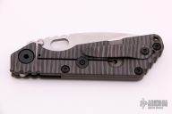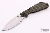 This MSC SNG framelock folder by Mick Strider features a stonewashed finished blade and a dimple pattern black/green G-10 and flamed titanium frame and tip up titanium clip. Includes Hinderer "Lock Bar Stabilizer" for maximum reverse lock retention. Nice detent, lockup and blade seating. New from maker.