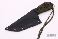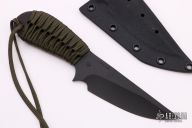 This knife by Mick Strider features a black blade with false top edge, .202" blade stock and 1.455" blade depth, full tang construction with paracord wrap. Comes with kydex sheath. New from maker at the CCKS.