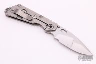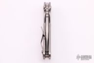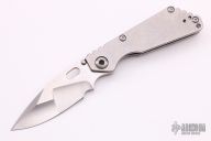 This SNG framelock folder by Mick Strider features a Nightmare Ground blade and a stonewashed titanium frame and tip up titanium clip. Includes a "Lock Bar Stabilizer" for maximum reverse lock retention. Nice detent, lockup and blade seating. Comes with velcro case. New from maker at the CCKS.
