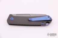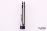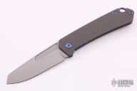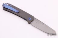 This OEM Slim is a Richard Rogers Design and features a bead blasted blade. The handle is milled and tumbled titanium with anodized titanium backspacer, hardware and tip up clip. Nice detent, lockup and blade seating. Comes with original packaging and brown leather slip sheath. New from maker.