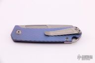 This OEM Slim is a Richard Rogers Design and features a bead blasted blade. The handle is milled and anodized titanium with blasted titanium backspacer, hardware and tip up clip. Nice detent, lockup and blade seating. Comes with original packaging and brown leather slip sheath. New from maker.