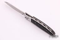 The 483 Shori is the embodiment of a gentlemen's carry. No details were overlooked in the production of this elegant tool, including the Nak-Lok and beautifully contoured black micarta handle with aluminum bolster. The stainless steel backspacer utilizes cutting edge MIM technology to emulate custom hand file work and the S30V utility blade style offers a variety of uses.