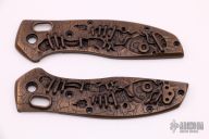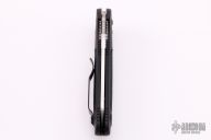 Mel Pardue design. Axis locking mechanism. Plain edged blade. Includes original packaging and paperwork. Excellent condition. Comes with additional steam punk scales and hardware.