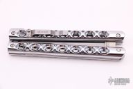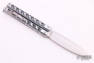The Paradox series is designed from the ground up to mimic a traditional balisong, or butterfly knife, in every respect but one--it can't be opened with one hand. The handles rotate 180 around the blade's unique split tang and uses strong opposing spring tension to lock the blade open or hold it firmly closed. Japanese AUS-8A stainless steel blade Aluminum handle, tip up stainless steel clip. Comes with original box.