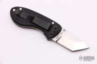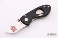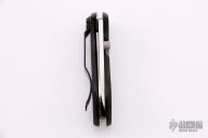 This knife by Al Mar features a chisel ground tanto blade with single knurled thumbstud. The handle has a black linen micarta frame with satin finished stainless steel liner and backspacer, blade stainless steel clip, tip down carry. Excellent condition.