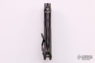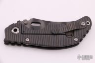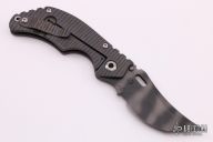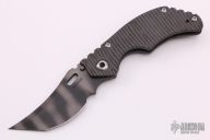 This KRT by Strider Knives features a tiger stripe upswept blade with thumbhole and notched thumbrest. The handle has a flame finished titanium frame with a matching titanium tip up clip. Nice detent, lockup and blade seating. New from Maker.