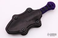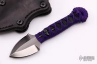 This Custom Arrow Tac by Bastinelli Knives features a Chisel ground double edged spear point blade. .178" Blade Stock. 1.38" Blade Depth. The handle has purple cord wrap over black cord under wrap and a skull menuki. Comes with brown leather sheath and the original padded zippered case. Excellent condition. New From maker.
