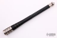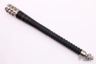 This 28 Divot Titanium Pocket Mace by Patrick Ober features a black linen micarta shaft with thin G-10 burl spacers and tumbled titanium ends. Comes with original bag. New from maker.