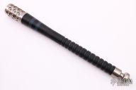 This 28 Divot Titanium Pocket Mace by Patrick Ober features a black linen micarta shaft with green G-10 spacers and tumbled titanium ends. Comes with original bag. New from maker.