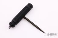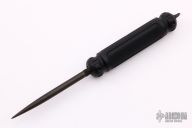 This Push Pick by Pat & Wes Crawford is a very unique concealable weapon, that is great for covert collectors. Completely hand made from the finest materials. The blade is stainless steel and the knurled handle is anodized hard aluminum. The blade screws in and out so that it can be made into an ice pick, a pick dagger, or the blade will store inside the handle. Very light and strong. Excellent condition.