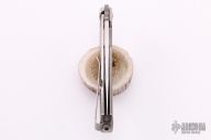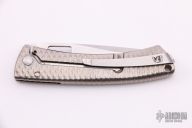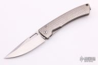 This DPx Gear Aculus from Lion Steel features a stonewashed spear point blade with square thumb-hole and notched thumbrest. The handle has a stonewashed integral titanium frame with tip up stainless steel clip. Has a nice detent, perfect blade seating and lockup. Appears to have been resharpened, otherwise good condition.