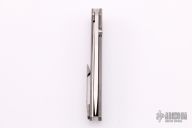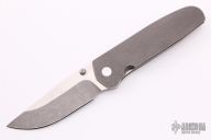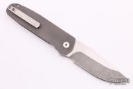 This One Off Prototype by Paulo Balzano features a two-tone blade with a single thumbstud. The handle has a tumbled titanium frame with single titanium liner and satin finished backspacer, tip up titanium clip. Nice detent, lockup and blade seating. Comes with a zippered case. Has some scuffs and some stains on the blade, otherwise good condition.