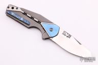 This TGIF II by GTC features a satin finished tanto blade. The handle is milled titanium with bead blasted and anodized finished features. The tip up pocket clip is zircuti . Nice detent, lockup and blade seating. Flips just like you would expect it to, perfectly. Comes with nylon zippered case and COA dated 2019. Originally from the 2019 Blade Show. Excellent condition.