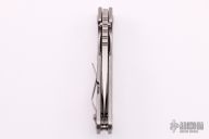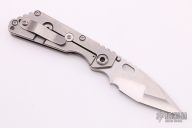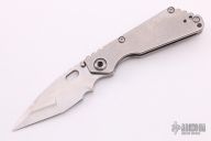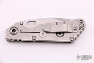 This SNG framelock folder by Mick Strider features a Nightmare Ground blade and a stonewashed titanium frame and tip up titanium clip. Includes a "Lock Bar Stabilizer" for maximum reverse lock retention. Nice detent, lockup and blade seating. Comes with velcro case. New from maker at the CCKS.