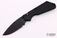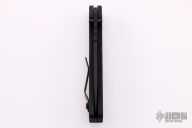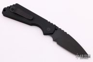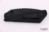 This Pro-Strider SNG by Pro-Tech and Strider Knives features a black blade with notched thumbrest. The handle has a black aluminum frame with black hardware and black stainless steel tip up clip.  There is a tritium lantern inlaid into the push button.  Comes with original box and papers. New from maker.