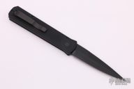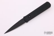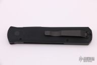 This Godfather by Pro-Tech features a black blade with false top edge. The handle has a black aluminum frame with black hardware and black stainless steel tip up clip.  There is a tritium lantern inlaid into the push button.  Comes with original box and papers. New from maker.
