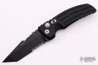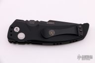 This EX-A01 by Hogue Knives is an Allen Elishewitz design, it features a black tanto partially serrated 154CM blade with notched thumbrest. The handle is black aluminum, tip up or down reversible black stainless steel clip. Has safety. Comes with Hogue box and papers. Excellent condition.