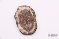 Wolf Srimshaw on Walrus Ivory dated 2019. Excellent condition. Approximately 2.75" tall and 2" wide and .25" thick.