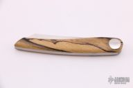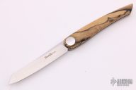 This Nesmuk folder is the perfect accessory for gourmets who like to cut with class and respect. Its blade is crafted from a high performance steel containing niobium. The blade has a hardness degree of approx. 60 HRC. Every folder is polished by hand to produce the best ergonomics possible. It is constructed as a classic slipjoint, the 3.3 inch long blade is only held and positioned by the spring. This spring holds the blade in place with a force of 6 newtons. Wood Covers. Excellent Condition.