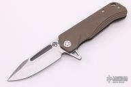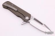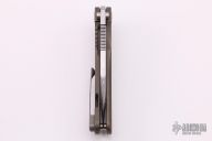 The Proxima started life as the Gigantes. For folks that wanted a larger than life knife it was awesome, but for the rest of planet Earth an adjustment in attitude was required. We drew-down the overall length to 8.8″ with a 4.9″ closed length for the pocket and 3.9″ blade length. All materials are of 3/16″ nominal stock, making for a very EDC friendly thickness. We played with several twists on the original name but as the prototype was carried by Greg, he kept saying, This knife is too awesome to get a spin-off name. Since every time anyone needed to look at the prototype it was in Greg’s pocket… always near, thus: Proxima. This is THE knife carried by Greg these days. As he says: I love the flipper/hilt and the basic meanness of this thing! It just looks bad ass and I look for reasons to snap it out all day What else can we say? This one has a tumbled S35VN blade with fullers, notched thumbrest and flipper. The handle has a anodized and blasted titanium frame with a tumbled tip up titanium clip. Comes with original box and papers. Excellent condition.
