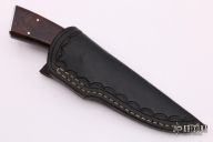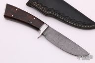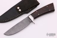 "My name is Dennis Riley. I am a custom knifemaker, a member of the Arkansas Knifemakers Association, and a Journeyman in the American Bladesmith Society. All my knives are hand forged. I use 1084, 5160 for plain carbon blades and 15N20, 52100, L-6 and 1084 for damascus. The carbon blades are zoned hardened and tempered at 375 degrees for 2 hours, twice, damascus blades are hardened and tempered at 475 degrees for 2 hours twice. This process is taught by the Bill Moran School of Bladesmithing. This process produces a hard cutting edge with a softer spine. I use various types of handle material, Walrus Ivory, Elephant Ivory, Fossilized Walrus Ivory, Oosic, Steller's Sea Cow Bone, Giraffe Bone, Stag, various wood which all is stabilized."