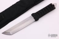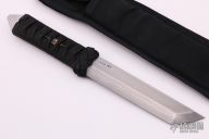 This Tanto from Master Smith Wally Hayes features a tanto blade with a nice hamon, .241" blade stock and 1.490" blade depth, hidden tang construction. The handle has stingray skin under a Turk's head paracord bolster and flat black cord wrap with menuki. Comes with a nylon sheath with belt loop. Has some light scratches, otherwise excellent condition.