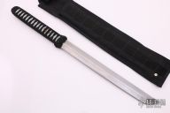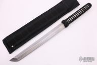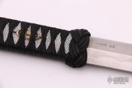 This Tanto from Master Smith Wally Hayes features a tanto blade with a nice hamon, .241" blade stock and 1.236" blade depth, hidden tang construction. The handle has stingray skin under a Turk's head paracord bolster and flat black cord wrap with menuki. Comes with a nylon sheath with belt loop. Has some light scratches, otherwise excellent condition.