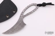 This knife by Borka Blades features a chisel ground stonewash finished blade with Borka pattern flats and handle with lanyard hole, .173" blade stock and 1.137" blade depth. Comes with a kydex sheath. Excellent condition.