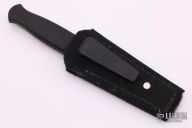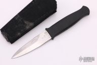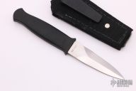 This Loveless Design Gerber Guardian Boot Knife has a double-edged satin finished spear point blade with black aluminum handle. Comes with black nylon sheath with clip. Has some scratches, otherwise good 3condition. J7862S