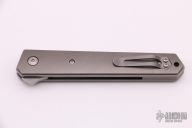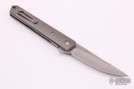 This Burnley Designed Kwaiken flipper (#1967) has an up-swept stonewashed blade with swedge and IKBS bearings. Has titanium scales and stainless steel liners. Tip up carry clip and lanyard hole. Great detent, lockup and blade seating. Excellent condition. Comes with original box.