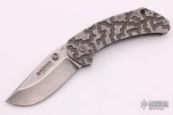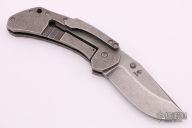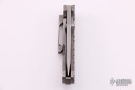 This Minos by Boker is a Jens Anso design. It features a tumble finished blade with single thumbstud. The handle has a milled and tumble finished titanium frame with tip down clip and matching backspacer. Comes with original drawstring bag and box.  #310 on blade.  Excellent condition.