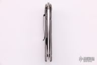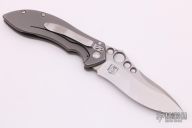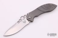 This Blackwood design Mini-Skirmish by Benchmade features a bead blasted titanium frame with a tumble finished spear point blade, thumbhole. Pocket clip is tip down stainless steel. Has some scratches, otherwise good condition.