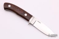 This Hunter by William Gordon Defreest features a mirror polished blade, .187" blade stock and .993" blade depth, full tapered tang construction. The handle has a nickel silver guard with wood scales. Has a few light scratches, otherwise excellent condition. #746 on tang of blade.