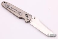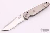 This Vision by SOG is a discontinued model, it features a satin finished partially serrated tanto blade with notched thumbrest and dual thumbstuds. The handle has blasted titanium scales with a stainless steel liner and tip down clip. Comes with original box and papers. Excellent Condition.